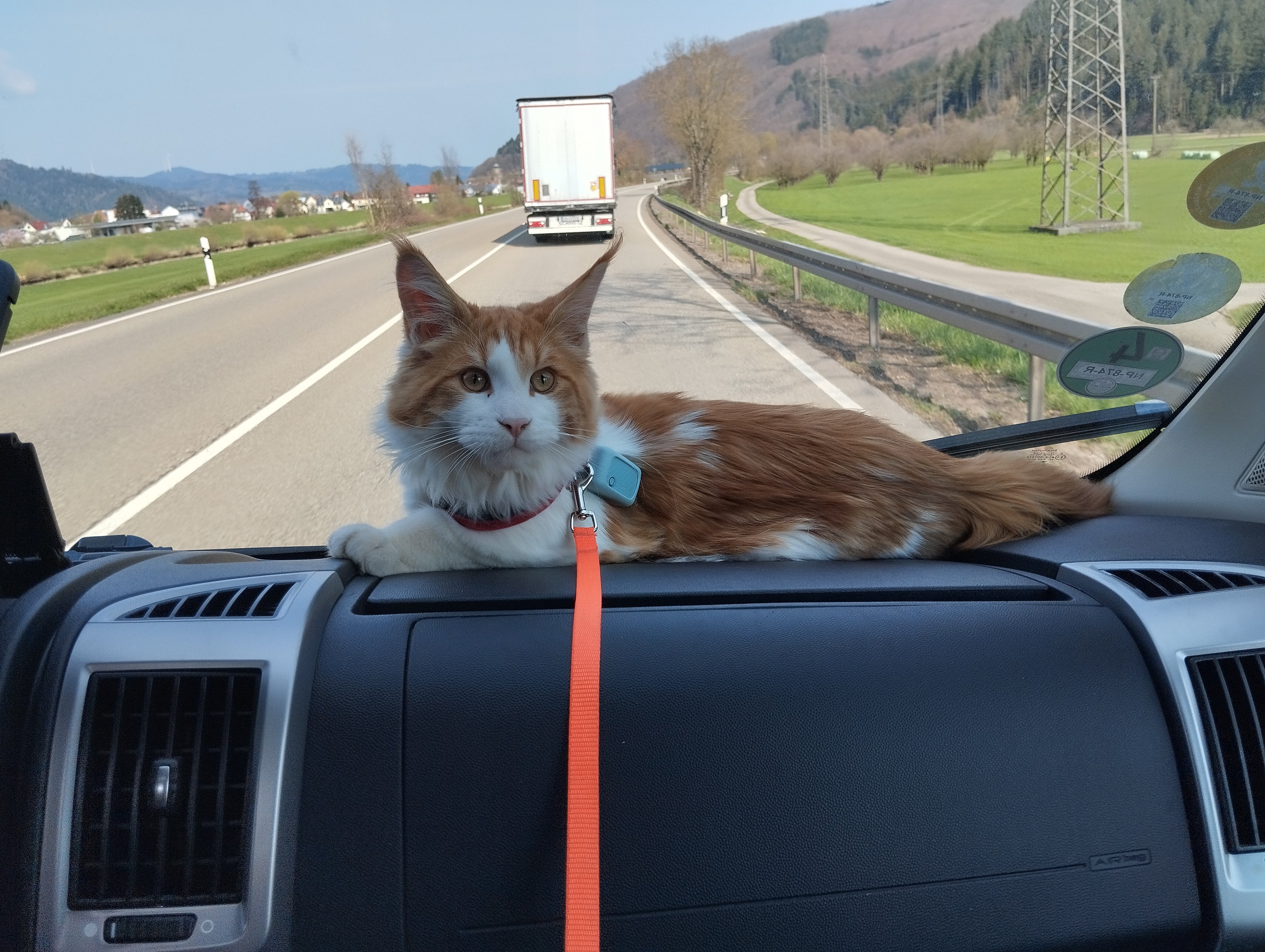 motor maar blijft de camper bewaken als wij door het heuvelachtige landschap toeren. Met een
