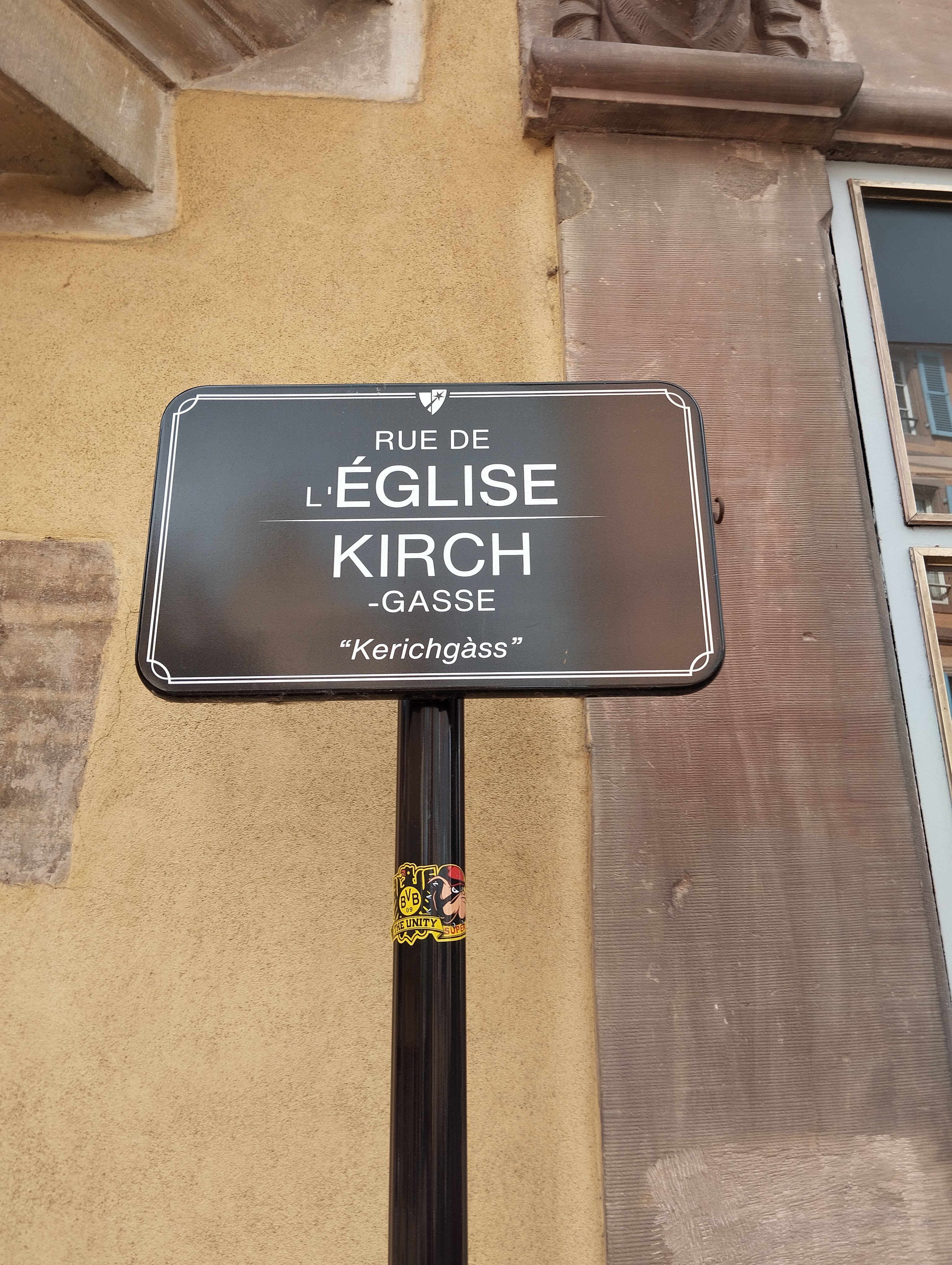 huizen zijn typisch Duits terwijl we toch echt in Frankrijk zijn. Straatnamen en plaatsen zijn allemaal